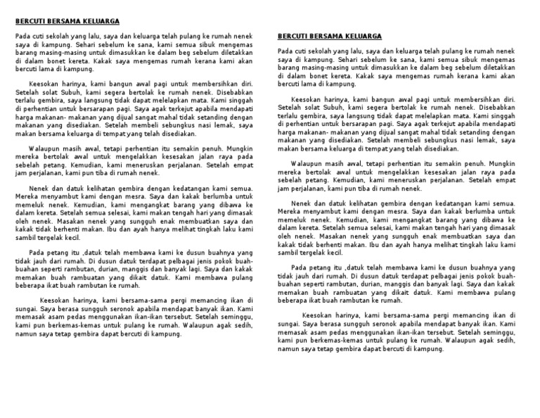 Contoh Karangan Upsr Pengalaman Melancong Bersama Keluarga Heidirogibbs